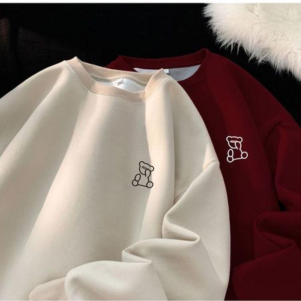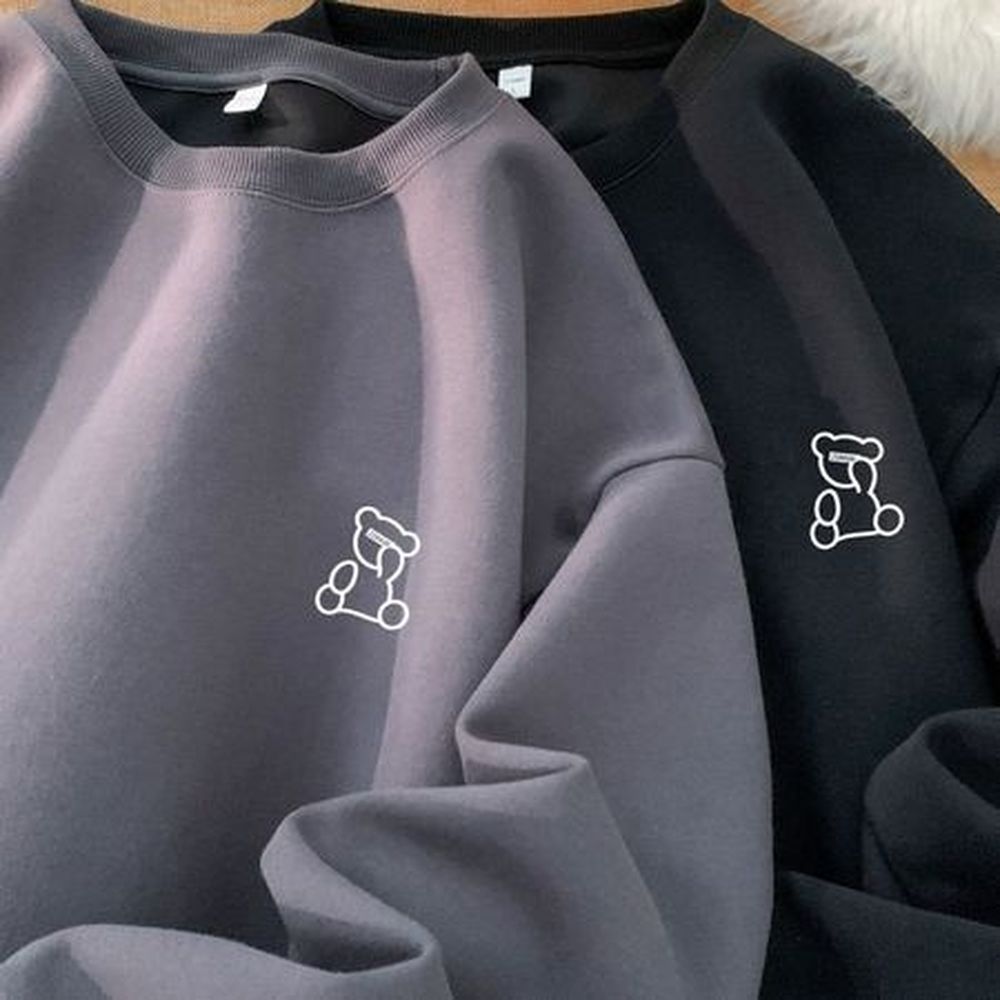 Men's Retro Bear Print Hoodie Crew Neck Sweatshirt