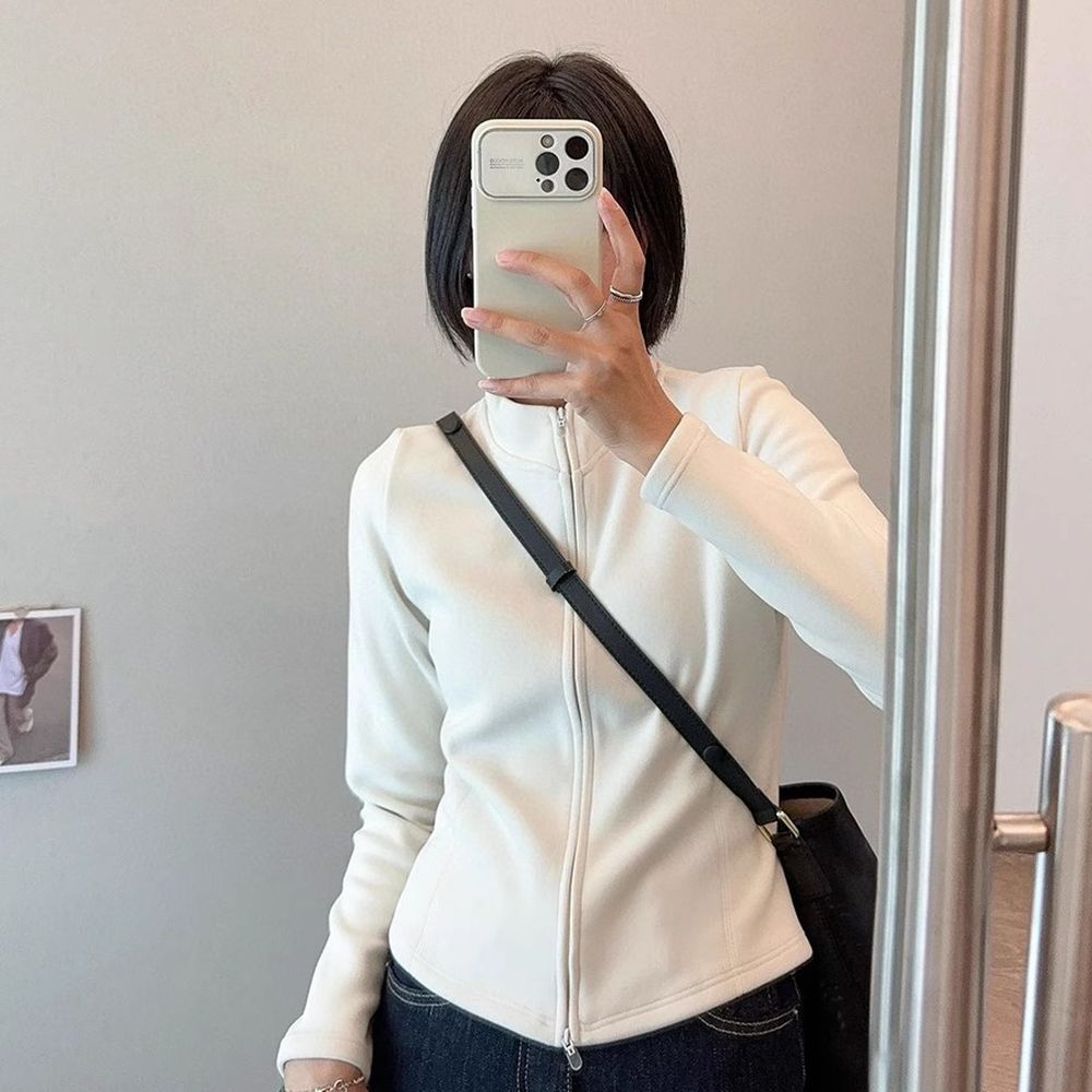 Women's Fashion Polar Fleece Round Neck Cardigan Jacket