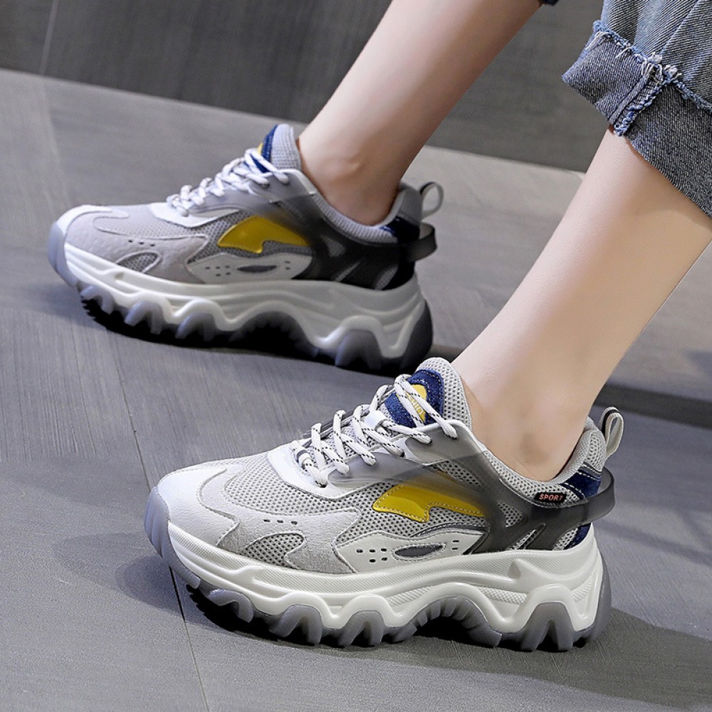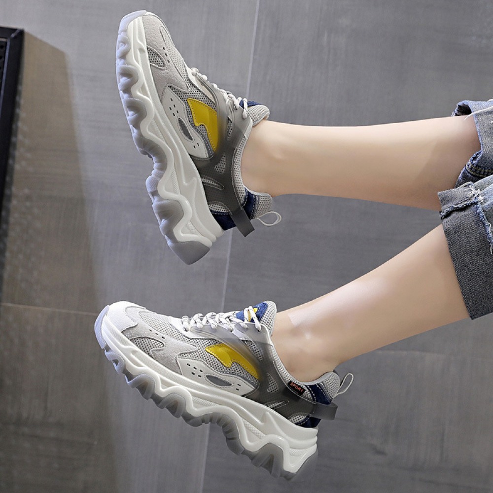 Women's Autumn New Casual Sports Shoes Mesh Breathable Thick Sole Height-Increasing Shoes Summer Trendy Sneakers