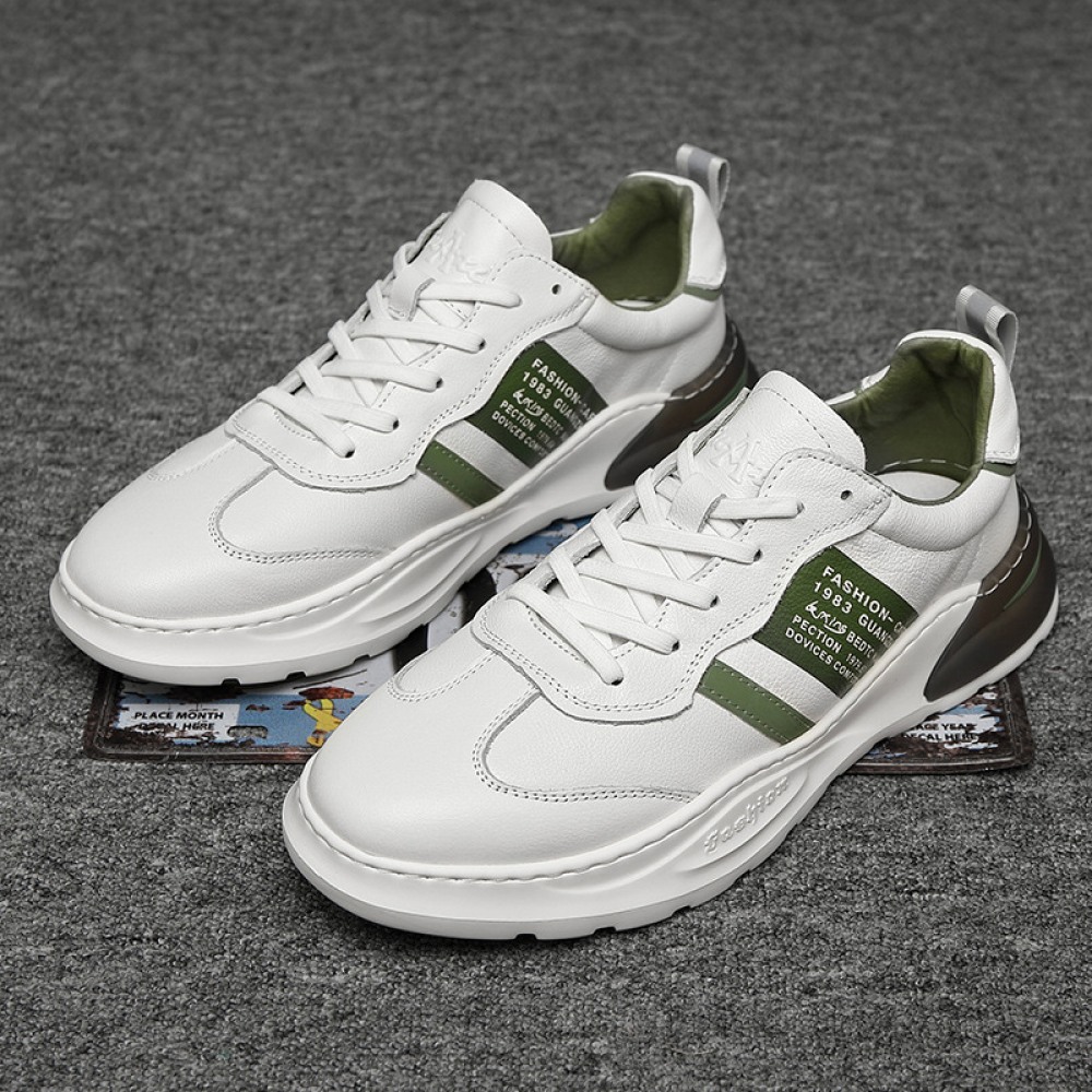 Men's Leather White Shoes New Autumn Casual Shoes Mens Trend Sports Shoes