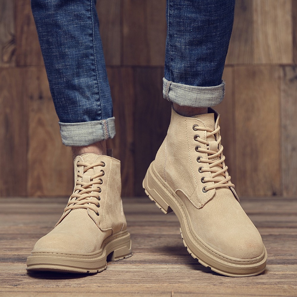 Trend Martin Boots Cow Suede Leather Men's Boots Low-Cut Tooling Boots Casual Mens Short Boots
