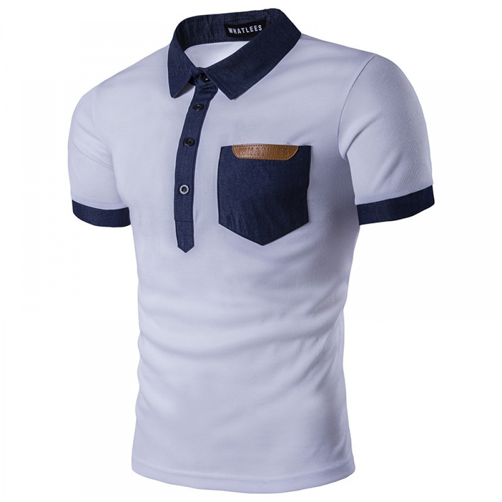 Men's Summer Solid Color Short-Sleeved Polo Shirt Mens Slim Stitching Lapel T-Shirt