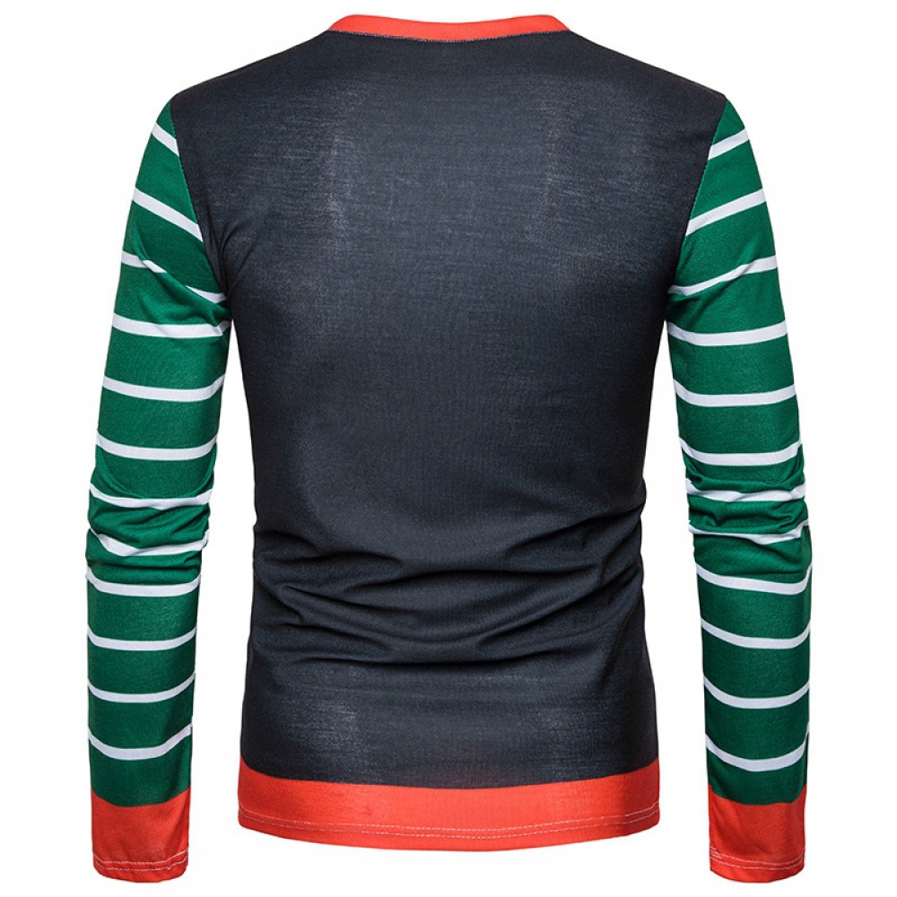 New Style Men's Fashion 3D Santa Claus Round Neck Long Sleeve Slim Printed T-Shirt