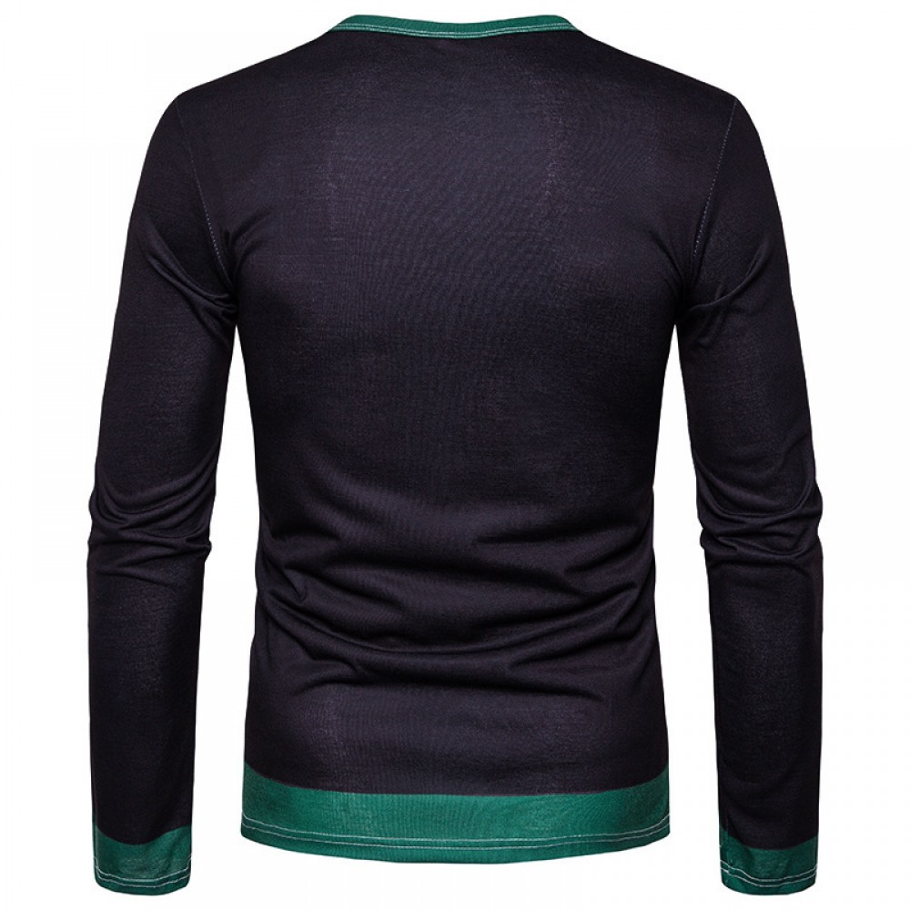 New Men's T-Shirt Slim Mid-Length Color Matching