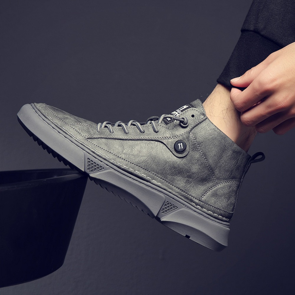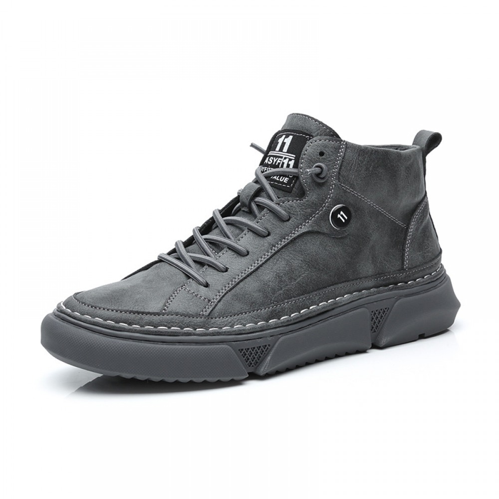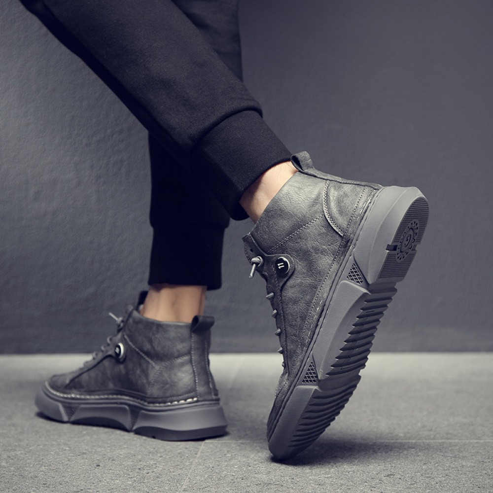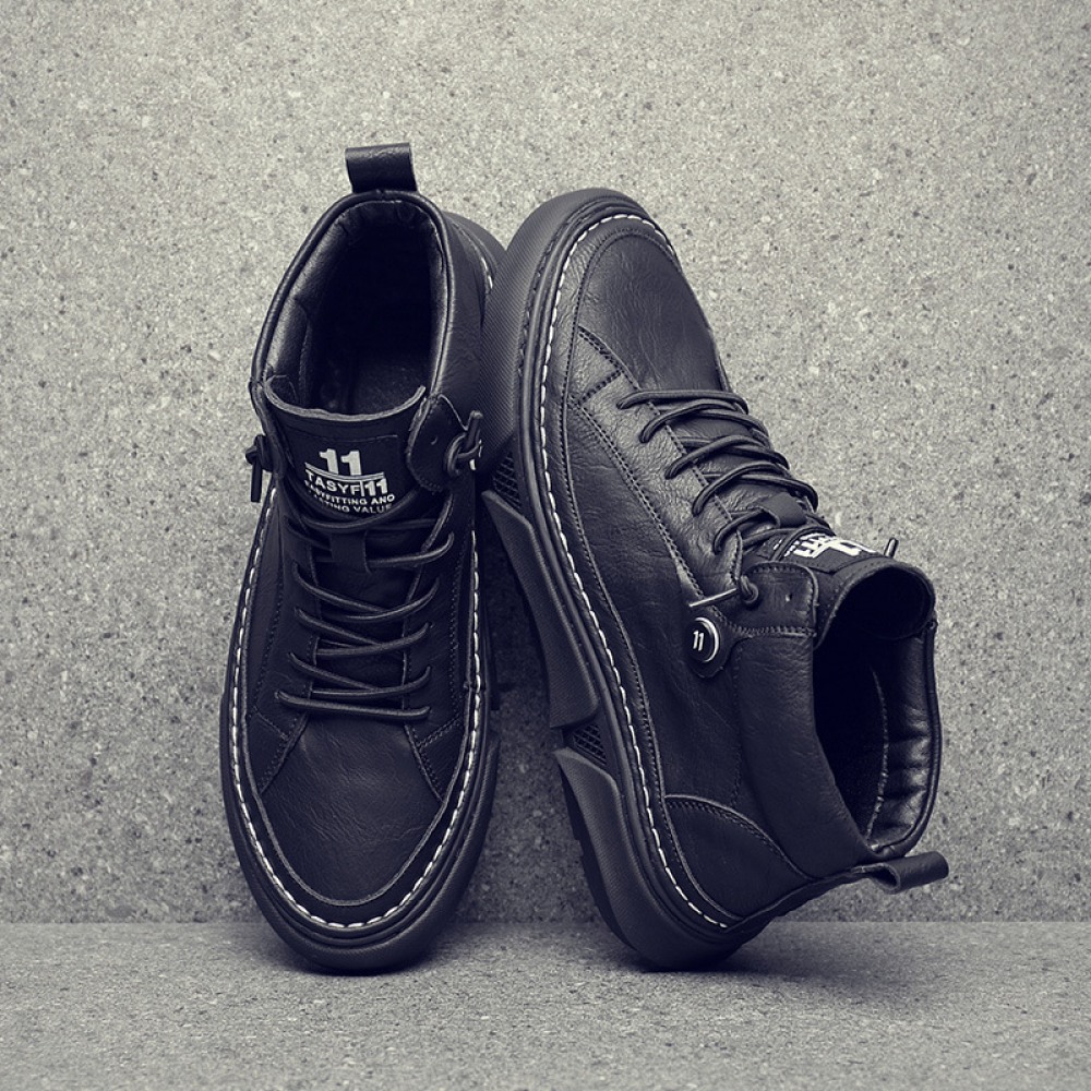 Black Martin Boots Men's Leather Mid-Top Leather Boots High-Top Casual Mens Shoes Increased