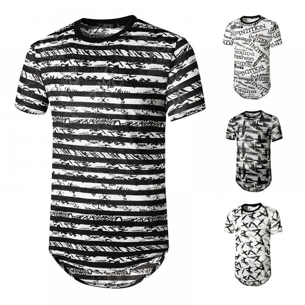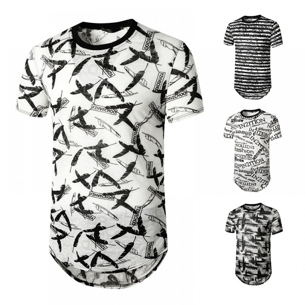 Summer Men's English Jacquard Fashion Hipster Hip-Hop Short-Sleeved T-Shirt