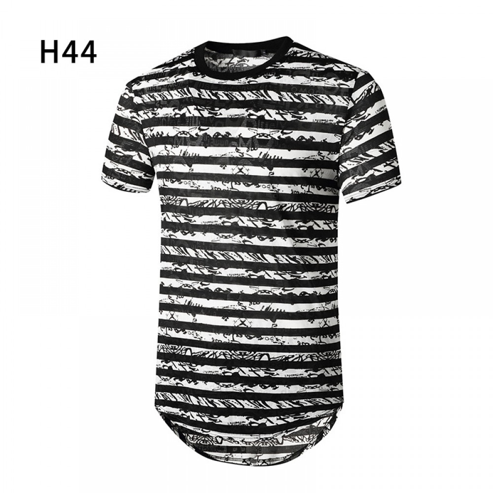 New Summer Men's Short-Sleeved T-Shirt Mens Contrast Striped Slim Casual T-Shirt