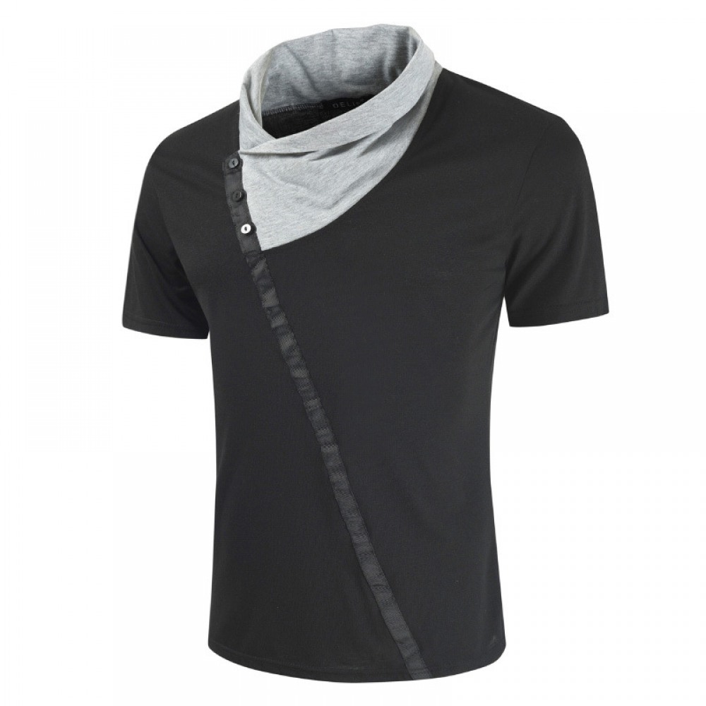 Fall and Winter New Men's Personality Big Press Button Hit Color Short-Sleeved Bottoming T-Shirt Casual Bottoming Shirt Hot Sale